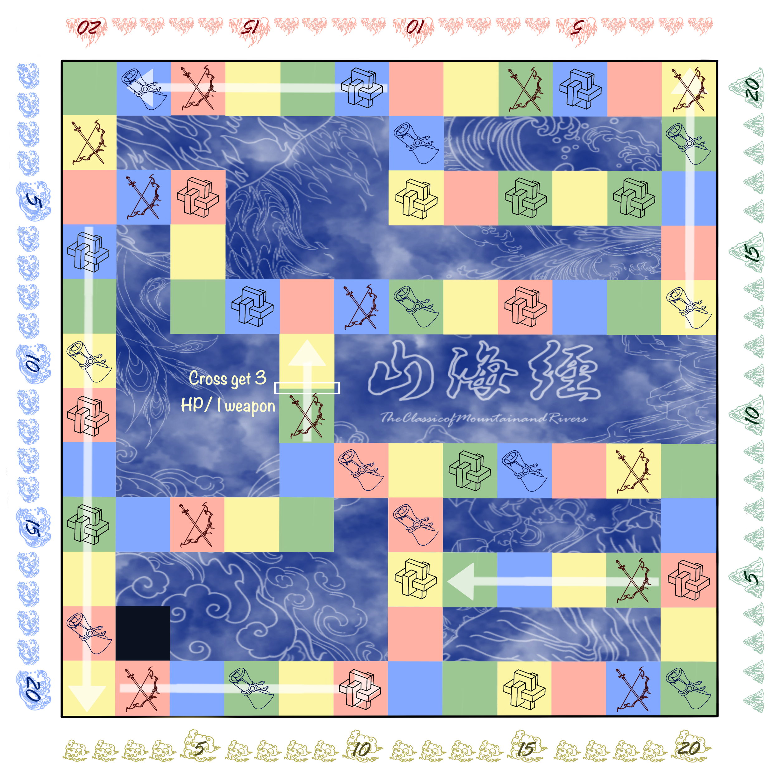 2. Players can move in any direction except in cases where arrows indicate a specific one-way direction.